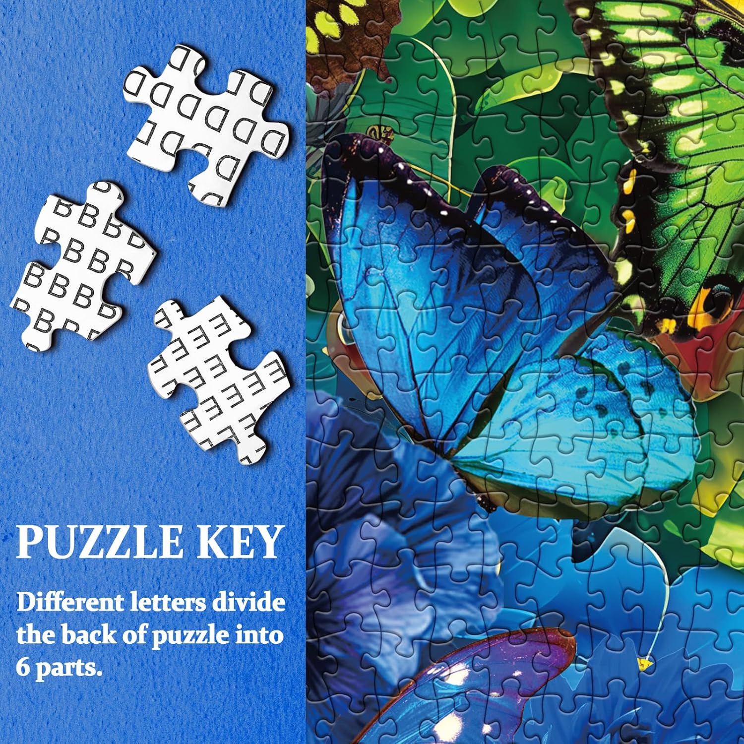 23,9*23,9in nach fertig. Die Schmetterlingsrätsel haben Buchstaben auf der Rückseite.