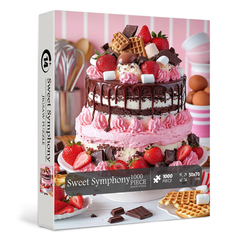 Gönnen Sie sich das exquisite Design unseres süßen Symphonie -Puzzles mit einem üppigen rosa Erdbeer -Schokoladenkuchen, der Sie in eine Welt der Süße und Freude transportiert.