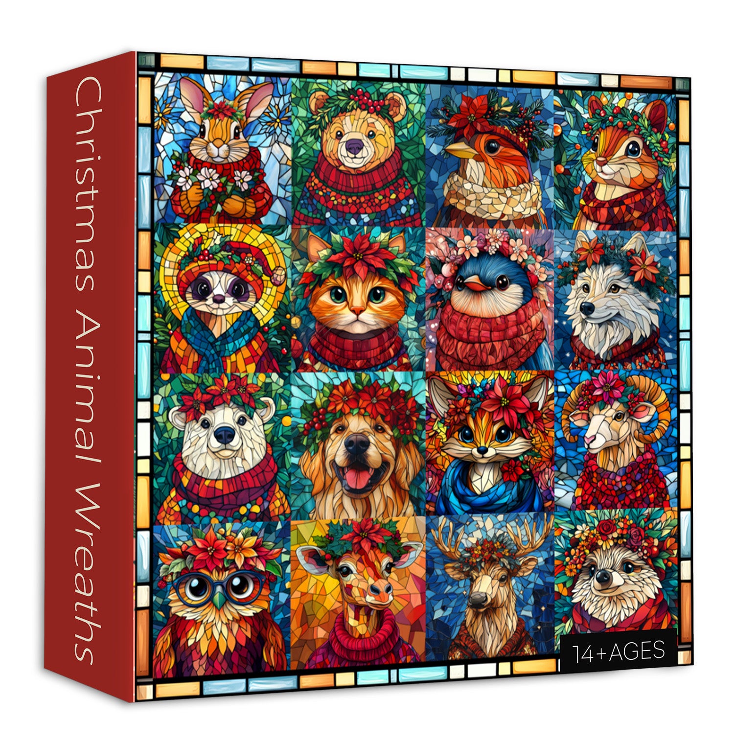 Christmas Animal Wreaths: 🎄 Immerse yourself in a whimsical holiday tale with our "Christmas Animal Wreaths" puzzle! Discover a charming menagerie of animals adorned in festive Christmas wreaths, beautifully captured in the artful style of glass painting. Let this captivating design bring a touch of seasonal cheer to your puzzling adventures.