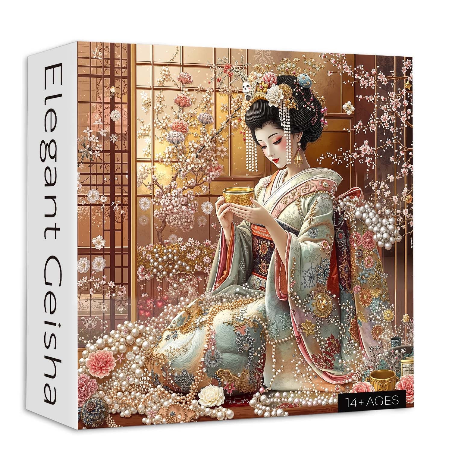 Elegant Geisha Puzzle:This puzzle showcases the elegant image of a geisha, with a design that is exquisitely detailed, capturing a unique Japanese aesthetic.