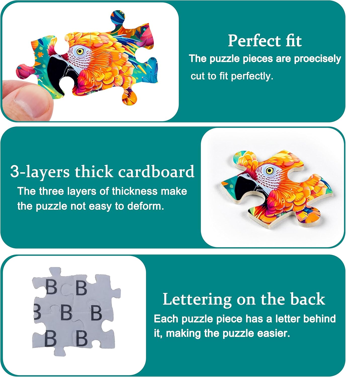 Beautifully made: This animal puzzles 1000 pieces is made of three-layer cardboard. Bright colors ensuring that you enjoy best visual experience during the splicing process. Each 1000 piece puzzle birds has been carefully polished, feels comfortable, and fits tightly, allowing you to feel the quality assurance while enjoying the fun of puzzle.