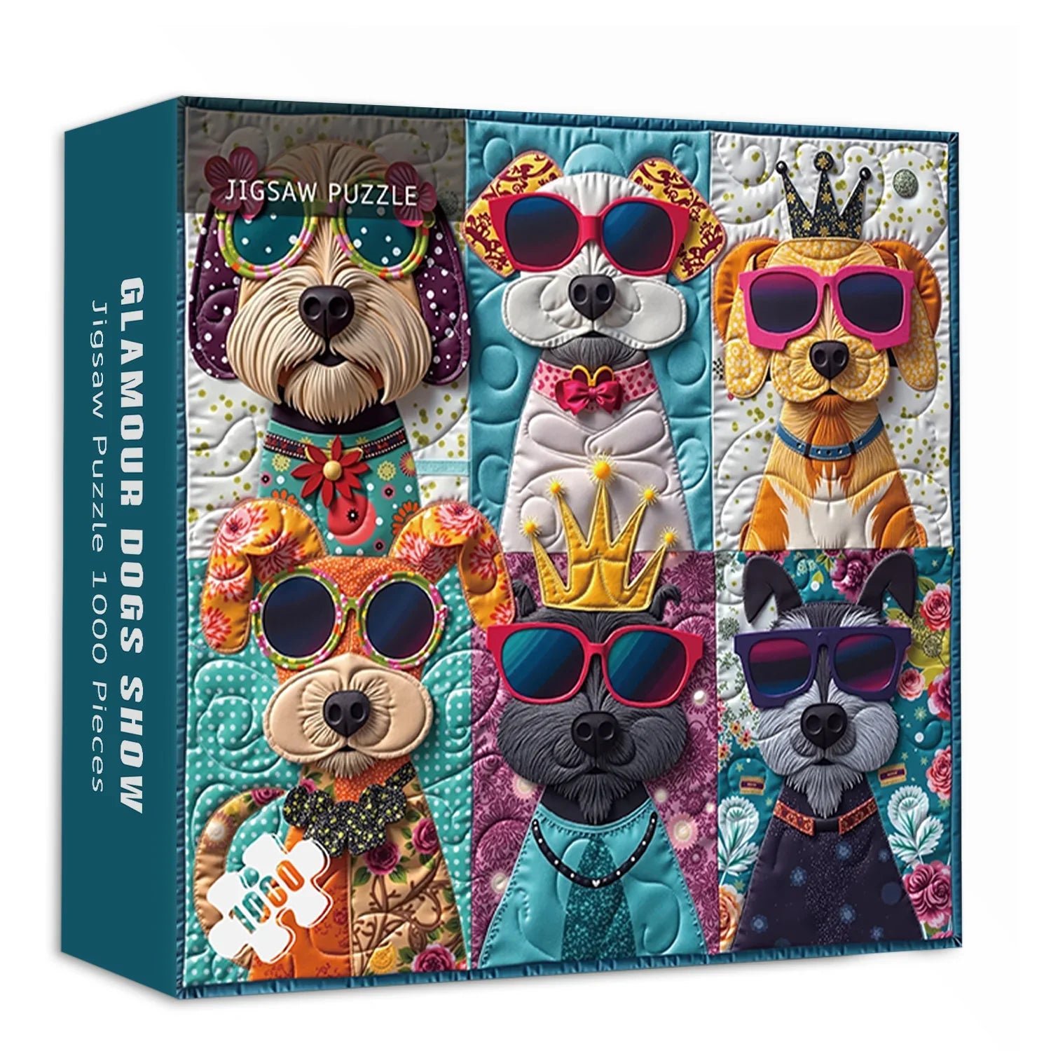 🐶😎: 【Glamour Dogs Show Jigsaw Puzzle】: When dogs meet fashionistas, they confidently walk onto the stage, wearing sunglasses, flower decorations, and crowns, each seemingly possessing a unique personality and story. Bold and vibrant colors, delicate patchwork textures, and lively expressions intertwine to create a warm, touching, and artistic scene, radiating joy 🐾💖.
