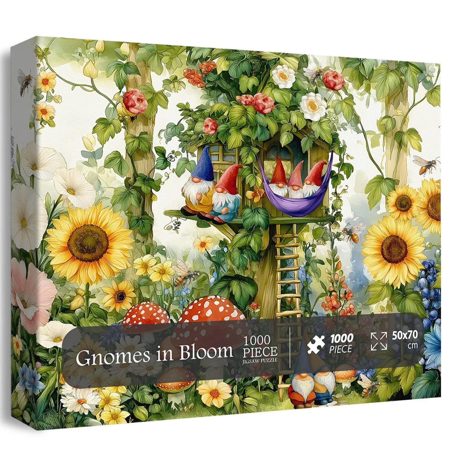 1 rompecabezas de gnomos en flor de 1000 piezas.