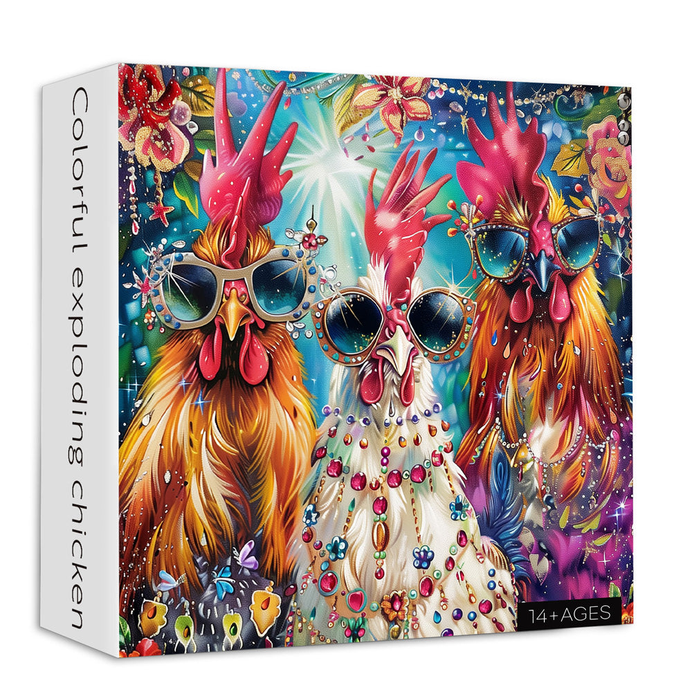 Colorful Exploding Chicken : Step into a world of brilliance and glamour with our Colorful Exploding Chicken puzzle, featuring gemstones, vibrant colors, sunglasses, and jewels that will captivate your imagination! 🌟💎🕶️