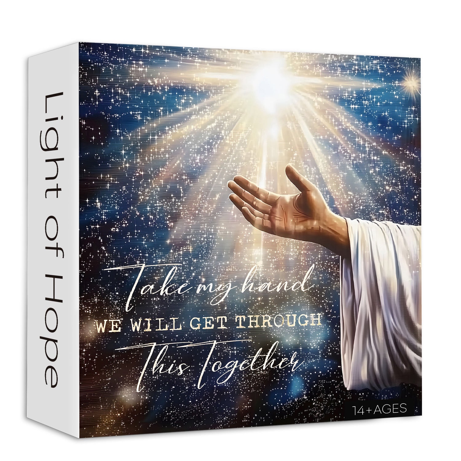 Light of Hope 🕊️🧩: Embrace the ethereal beauty of the Light of Hope puzzle, where a divine light shines upon the hands of Jesus, accompanied by a heartfelt message: "Give me your hand, let's through together." This puzzle weaves unity and faith into a mesmerizing piece of art.