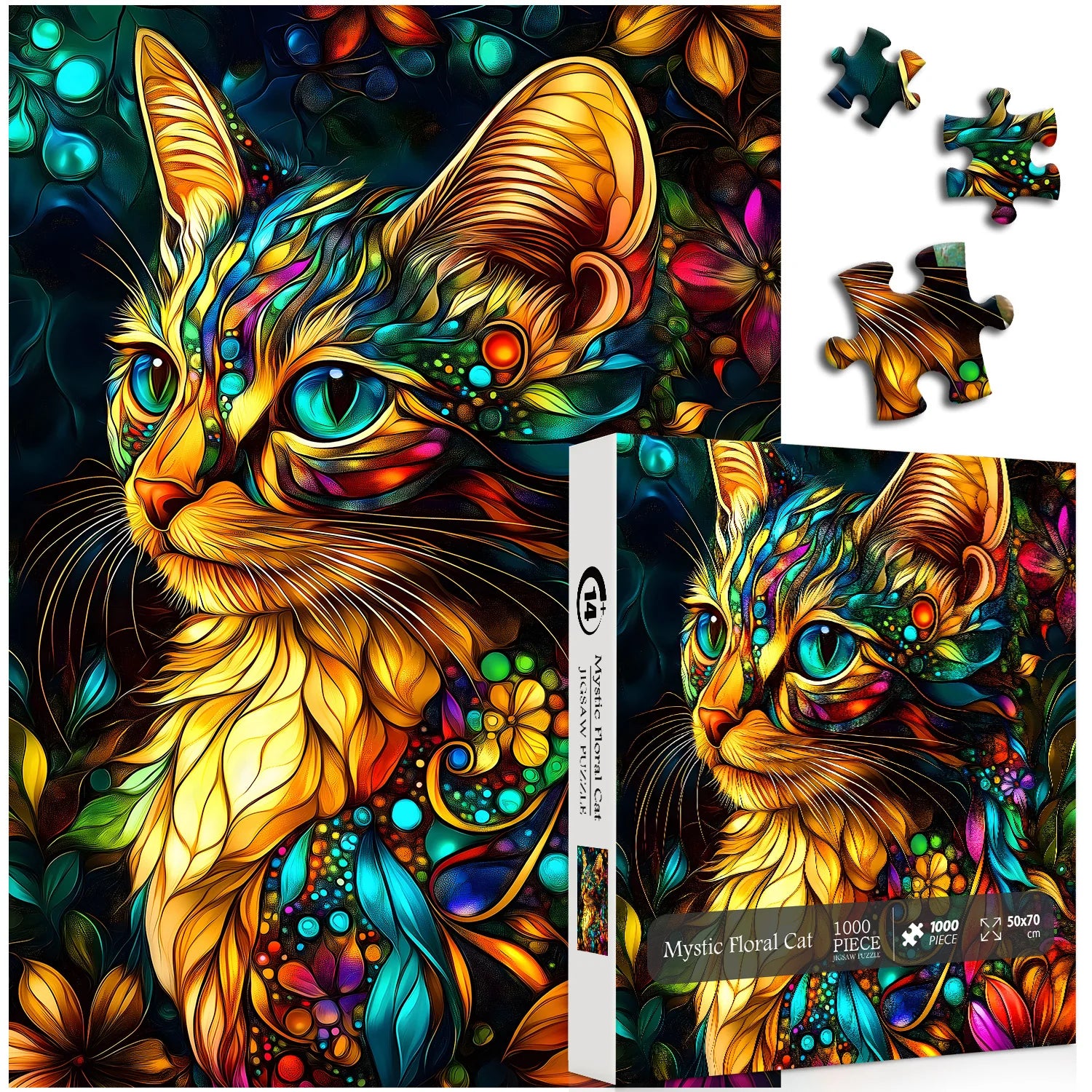 1* Mystic Floral Cat Jigsaw Puzzle 1000 Pieces